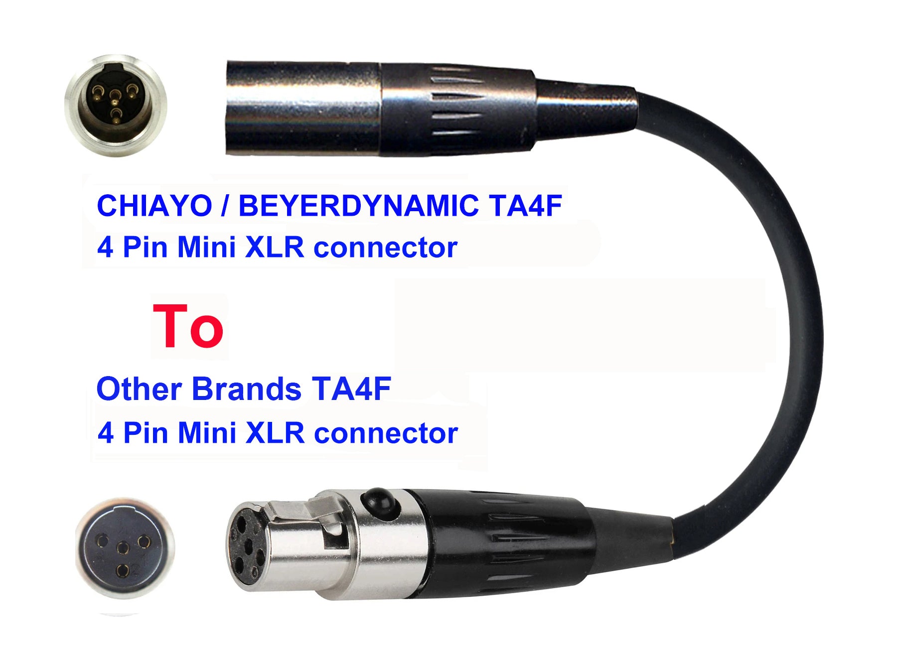 Microphone Adapter - Chiayo / JTS / Line6 / Beyerdynamic Microphones with TA4F 4 pin mini XLR connector TO Other Brands Transmitters with 4pin TA4M connector