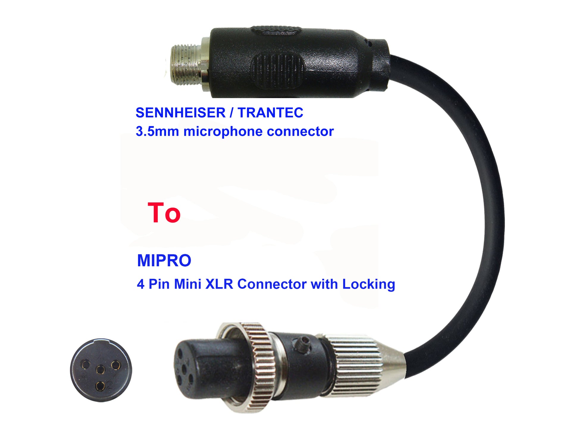 This microphone adapter can convert your Sennheiser / Trantec Headset / Ear Hook / Lavaliere / Handheld condenser Microphone with 3.5mm Locking connector TO work with Mipro transmitters with 4 pin TA4M Locking connector.